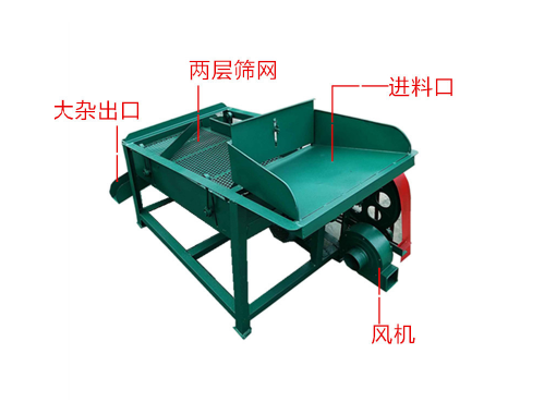 該機(jī)由料斗、機(jī)架、傳動(dòng)機(jī)構(gòu)、風(fēng)機(jī)、風(fēng)道等五部分組成,機(jī)架地腳裝有四個(gè)輪子,方便移動(dòng);篩網(wǎng)與機(jī)架采用分體式結(jié)構(gòu),便于更換各種不同目數(shù)的網(wǎng)篩。