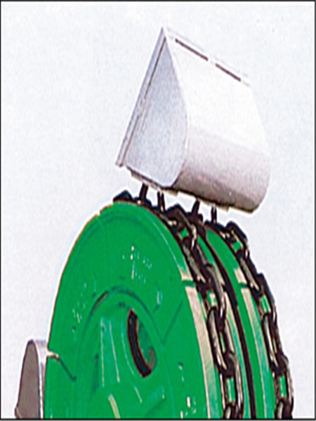 TH型斗式提升機(jī)備有二種料斗:ZH型(中深斗)一般適用于輸送濕的、易結(jié)塊、較難拋出的物料,如濕砂、型砂、化肥、堿肥、堿粉等。TH型(深斗)一般適用于輸送干燥的、松散易于拋出的物料,如水泥、碎石、煤塊等。TH系列環(huán)鏈斗式提升機(jī)傳動(dòng)裝置有二種形式,分別配有ZJ型減速器和ZQ型減速器。ZJ型軸裝減速器直接套裝在主軸軸頭上,省去了傳動(dòng)平臺(tái),聯(lián)軸器等,使結(jié)構(gòu)緊湊、重量輕、而且內(nèi)部帶有異型輥逆止器,逆止可靠,該減速器噪聲低,運(yùn)轉(zhuǎn)平穩(wěn),并隨主軸浮動(dòng),可消除安裝應(yīng)力。本機(jī)輸送量365m3/h,提升高度為50m。