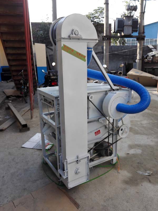 本機(jī)為三層篩網(wǎng),先經(jīng)過進(jìn)料口處風(fēng)機(jī)抽風(fēng),直接抽走重量輕的雜葉或麥秸稈,上層篩的初次篩分再把大雜清理過,好的糧食(種子)直接落到下層篩網(wǎng)上,下層篩網(wǎng)會(huì)把糧食(種子)中的小雜.小石子.有缺陷的糧食(種子)直接漏掉,完好的糧食(種子)會(huì)從出料口篩分出來。該小型清糧機(jī)解決了揚(yáng)場(chǎng)機(jī)的功能單一,不能有效去除石子.土塊的缺陷,更能為清理、凈選糧食(種子)帶來滿意的效果。該機(jī)有占地小,移動(dòng)方便,便以維修,除塵除雜效率明顯,能耗低,使用簡(jiǎn)便等優(yōu)點(diǎn)。
