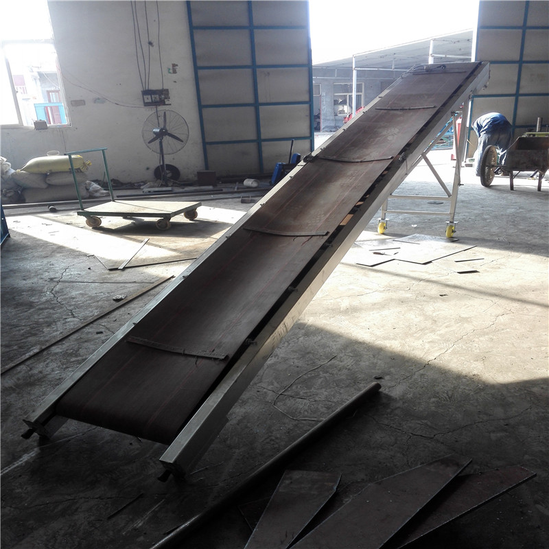 主要由機架、輸送皮帶、皮帶輥筒、張緊裝置、傳動裝置等組成。機身采用鋼板連接而成 ,由前后支腿的高低差形成機架,平面呈一定角度傾斜。機架上裝有皮帶輥筒、托輥等,用于帶動和支承輸送皮帶。有減速電機驅(qū)動和電動滾筒驅(qū)動兩種方式。