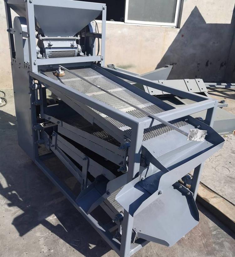 將花椒放入進(jìn)料口----進(jìn)料口下方有一個(gè)分離器將花椒耙籽殼分離開---分離的混合物料落入回旋篩---回旋篩分為3層---一層出料霉花椒、花椒葉、花椒枝---一層復(fù)式篩網(wǎng)篩的是花椒枝---二層為花椒枝出料口---復(fù)式篩網(wǎng)為花椒籽出料口---花椒籽出來(lái)時(shí)有風(fēng)機(jī)可以增加花椒籽的凈度。提高花椒凈度----底層出來(lái)的是花椒殼