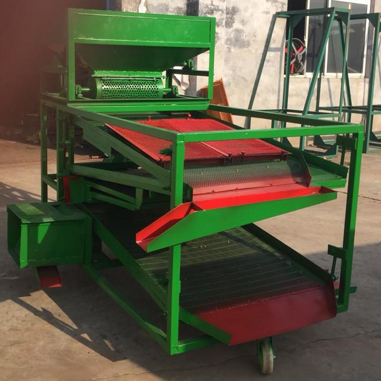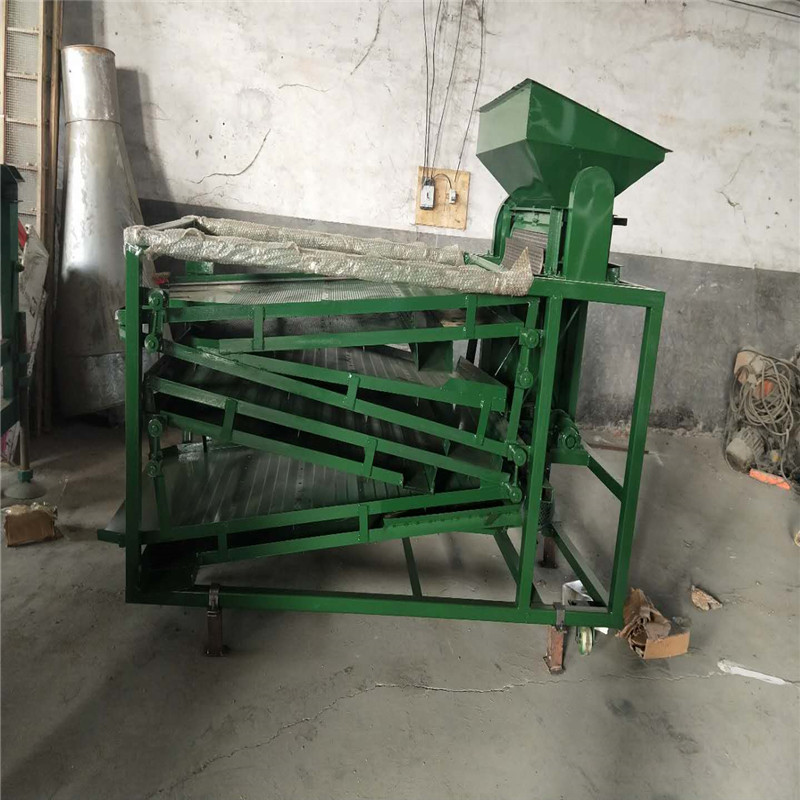 花椒除雜篩是利用打碎分離+篩選的方式進(jìn)行花椒打把脫粒篩選處理,原枝花椒放進(jìn)進(jìn)料斗后把花椒把打下來,花椒籽從殼里打出來,通過下料器落到篩面上篩選,一層篩選出來的梅花椒和大的花椒枝葉----二層是花椒籽,會(huì)落到風(fēng)機(jī)口進(jìn)行二次風(fēng)選----三層進(jìn)行復(fù)試篩選----四層是成品椒殼,可以直接打包,我們都知道花椒篩分機(jī)都是上下篩,下篩篩出來的花椒枝葉,以前十幾個(gè)人干的工作,現(xiàn)在只需一人就能完成,篩選凈度高,產(chǎn)量也大。