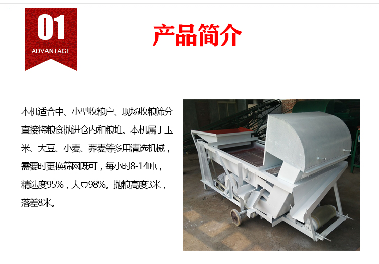 產(chǎn)品描述:江西油菜籽風(fēng)選篩分機(jī),該機(jī)采用三層篩網(wǎng)篩分,可篩選多種物料,不同物料只需更換不同規(guī)格的篩網(wǎng)進(jìn)行篩分,篩選范圍廣,操作方便,產(chǎn)量大,功耗小。針對(duì)油菜籽有很好的清選篩