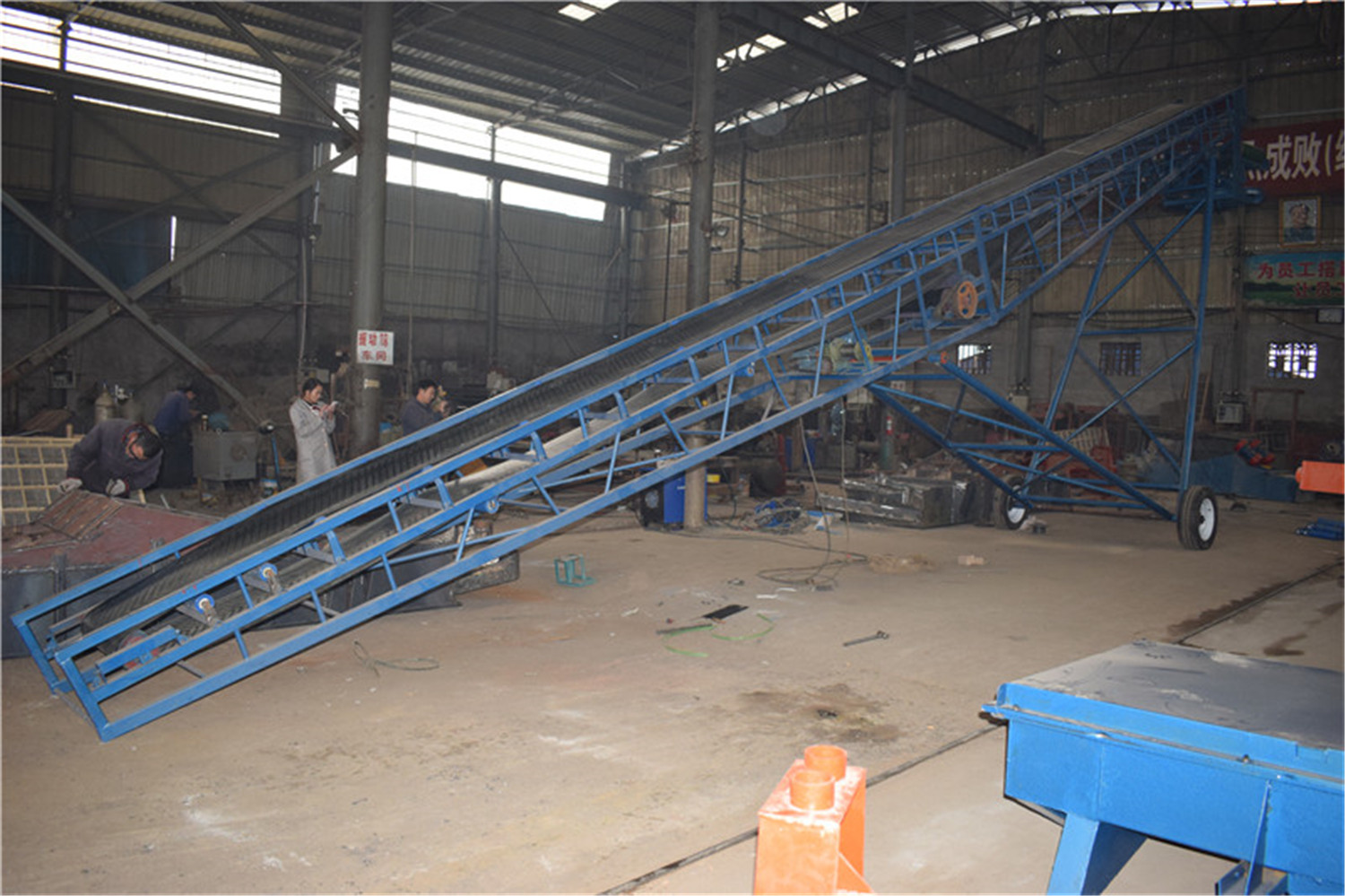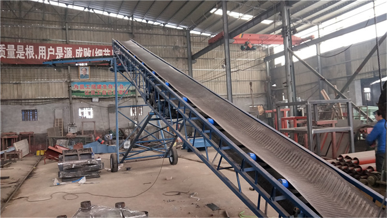 在移動(dòng)式皮帶輸送機(jī)機(jī)架兩旁裝可配有擋管或擋邊,防止糧包在輸送時(shí)掉包,防止糧食撒漏,便于散裝糧食輸送。大、小走輪均采用實(shí)心膠輪或充氣橡膠輪,防止壓碎糧食和倉庫地面。小走輪具有自動(dòng)轉(zhuǎn)向的功能,保證了機(jī)器移動(dòng)輕便靈活。移動(dòng)式皮帶輸送機(jī)機(jī)架采用焊接的珩架結(jié)構(gòu),在包運(yùn)集中載荷下有足夠的強(qiáng)度和良好的鋼性。主要用于裝卸地點(diǎn)經(jīng)常變更動(dòng)的場所,用來短途運(yùn)輸及裝卸散料或單件重量300公斤以下的成件物品。輸送機(jī)底部安裝有萬向輪,可以根據(jù)物料的堆放位置隨意移動(dòng),是一種工效高,使用安全可靠,機(jī)動(dòng)性好的連續(xù)輸送裝卸設(shè)備。經(jīng)常使用的移動(dòng)式皮帶輸送機(jī)寬度有500mm、600mm、800mm等,經(jīng)常使用的長度有6米、8米、10米、12米、15米、16米、18米、20米、22米、30米100米200米等其它有客戶根據(jù)實(shí)際需求而制本系列輸送機(jī)分為可升降型及不可升降型兩大類,即:可移動(dòng)不帶升降式皮帶輸送機(jī)和可移動(dòng)升降式皮帶輸送機(jī)兩種類型。