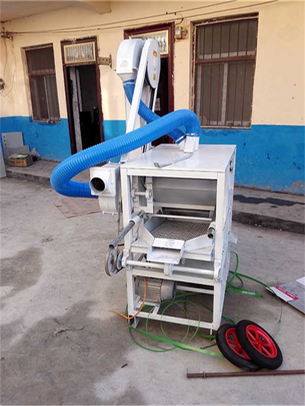 本機(jī)為三層篩網(wǎng),先經(jīng)過(guò)進(jìn)料口處風(fēng)機(jī)抽風(fēng),直接抽走重量輕的雜葉或麥秸稈,上層篩的初次篩分再把大雜清理過(guò),好的糧食(種子)直接落到下層篩網(wǎng)上,下層篩網(wǎng)會(huì)把糧食(種子)中的小雜.小石子.有缺陷的糧食(種子)直接漏掉,完好的糧食(種子)會(huì)從出料口篩分出來(lái)。該小型清糧機(jī)解決了揚(yáng)場(chǎng)機(jī)的功能單一,不能有效去除石子.土塊的缺陷,更能為清理、凈選糧食(種子)帶來(lái)滿意的效果。該機(jī)有占地小,移動(dòng)方便,便以維修,除塵除雜效率明顯,能耗低,使用簡(jiǎn)便等優(yōu)點(diǎn)。