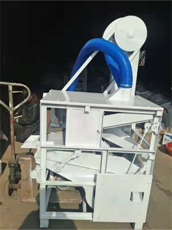 本機(jī)為三層篩網(wǎng),先經(jīng)過(guò)進(jìn)料口處風(fēng)機(jī)抽風(fēng),直接抽走重量輕的雜葉或麥秸稈,上層篩的初次篩分再把大雜清理過(guò),好的糧食(種子)直接落到下層篩網(wǎng)上,下層篩網(wǎng)會(huì)把糧食(種子)中的小雜.小石子.有缺陷的糧食(種子)直接漏掉,完好的糧食(種子)會(huì)從出料口篩分出來(lái)。該小型清糧機(jī)解決了揚(yáng)場(chǎng)機(jī)的功能單一,不能有效去除石子.土塊的缺陷,更能為清理、凈選糧食(種子)帶來(lái)滿意的效果。該機(jī)有占地小,移動(dòng)方便,便以維修,除塵除雜效率明顯,能耗低,使用簡(jiǎn)便等優(yōu)點(diǎn)。